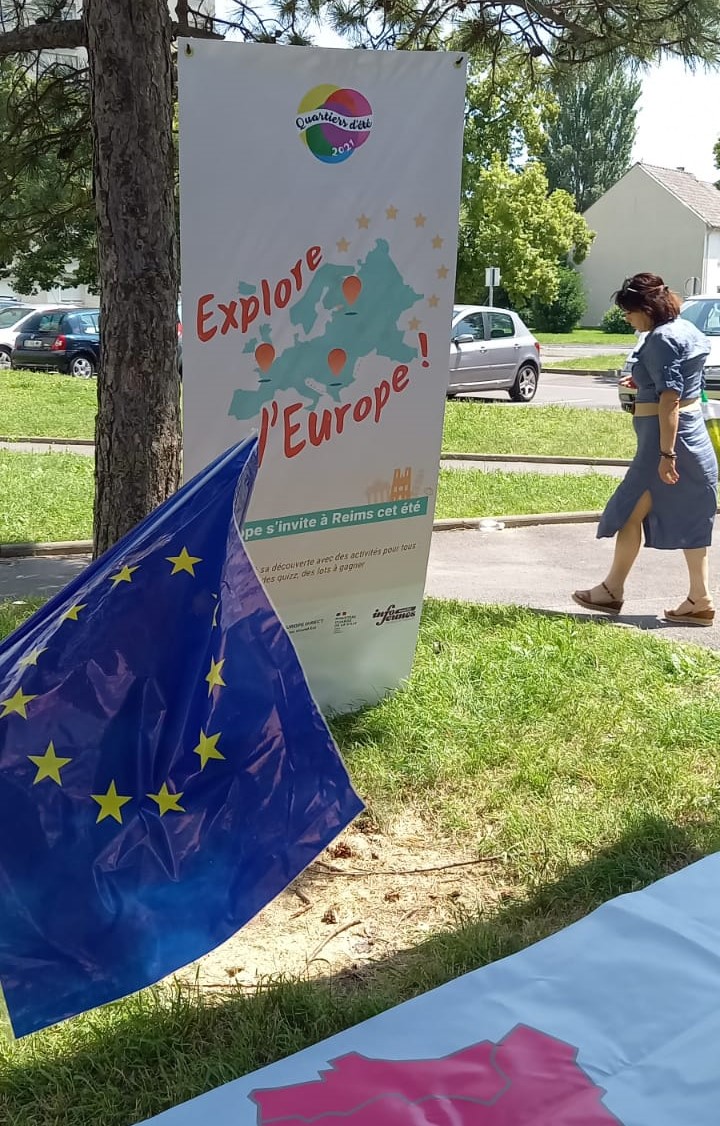 Avec le Mouvement européen Marne et différentes maisons de quartiers des quartiers prioritaires de la ville de Reims, nous avons été à la rencontre des jeunes et des familles en proposant des animations autour de la découverte de l’Europe. Nous sommes heureux d’avoir pu toucher au total plus d’une centaine de personnes dont une grande majorité de jeunes.